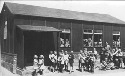 Provisorien. 1919 war ein Pavillon neben den Eichen auf dem Schulhof aufgestellt